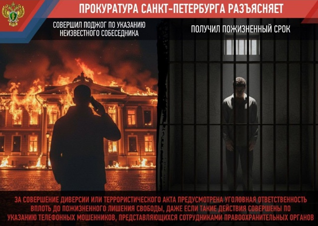 Помните: За совершение диверсии или террористического акта предусмотрена уголовная ответственность вплоть до пожизненного лишения свободы! И это касается даже тех случаев, когда подобные действия были совершены по указанию телефонных мошенников, представляющихся сотрудниками правоохранительных органов.